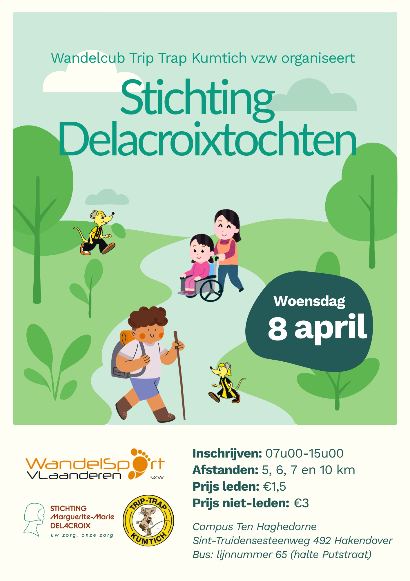 Al sinds 2006 organiseert wandelclub Trip Trap vzw uit Kumtich in samenwerking met onze voorziening een wandeling die vertrekt vanuit campus Ten Haghedorne. Dit jaar verwelkomen we je graag op woensdag 8 april.